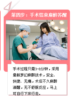 手术只需短短几分钟,就可做好,术后观察两个小时左右,如无大碍就可离院。