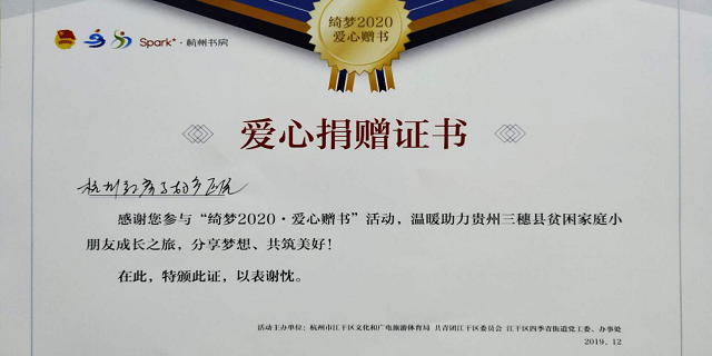 分享梦想、共筑美好!日前,一场为温暖助力贵州三穗县贫困家庭小朋友成长之旅的“绮梦2020·爱心赠书”活动,由杭州市江干区文化和体育广播旅游局、共青团江干区委员会、江干区四季青街道党工委、办事处主办,旨在通过小小的善举,点亮孩子苛求知识的心灯。